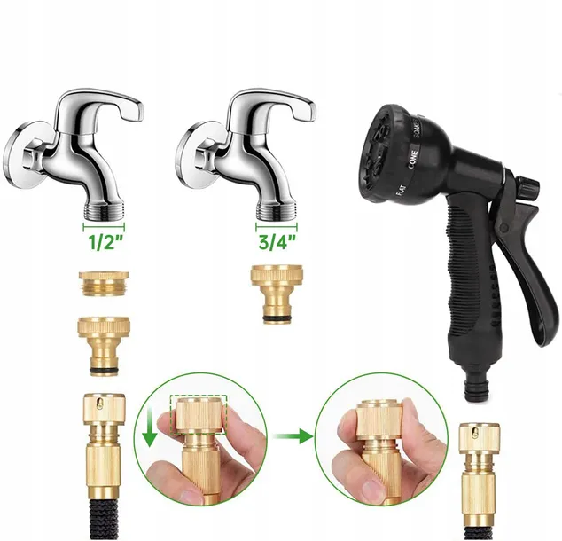 ✅Wąż po złożeniu nie zajmuje dużo miejsca, dodatkowo do zestawu dołączamy hak, który można umieścić na ścianie, a następnie na nim powiesić wąż.
